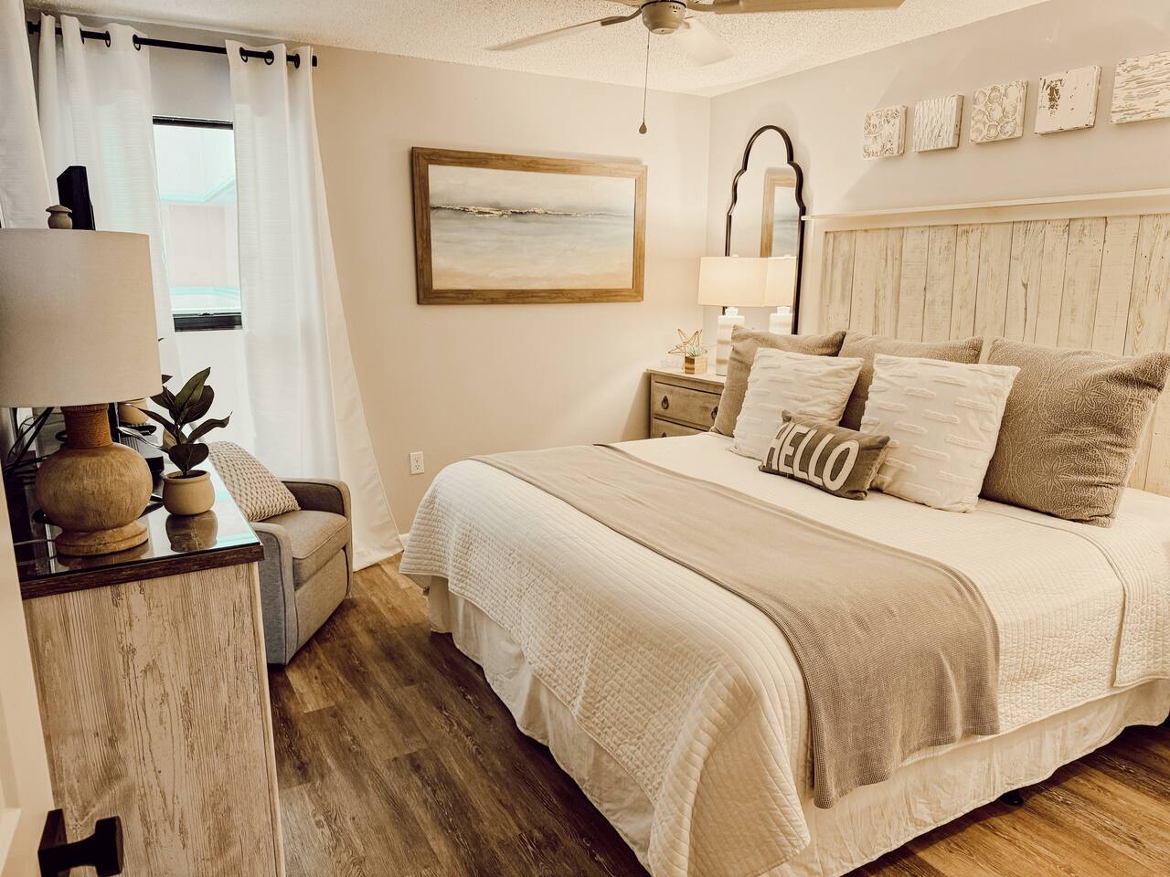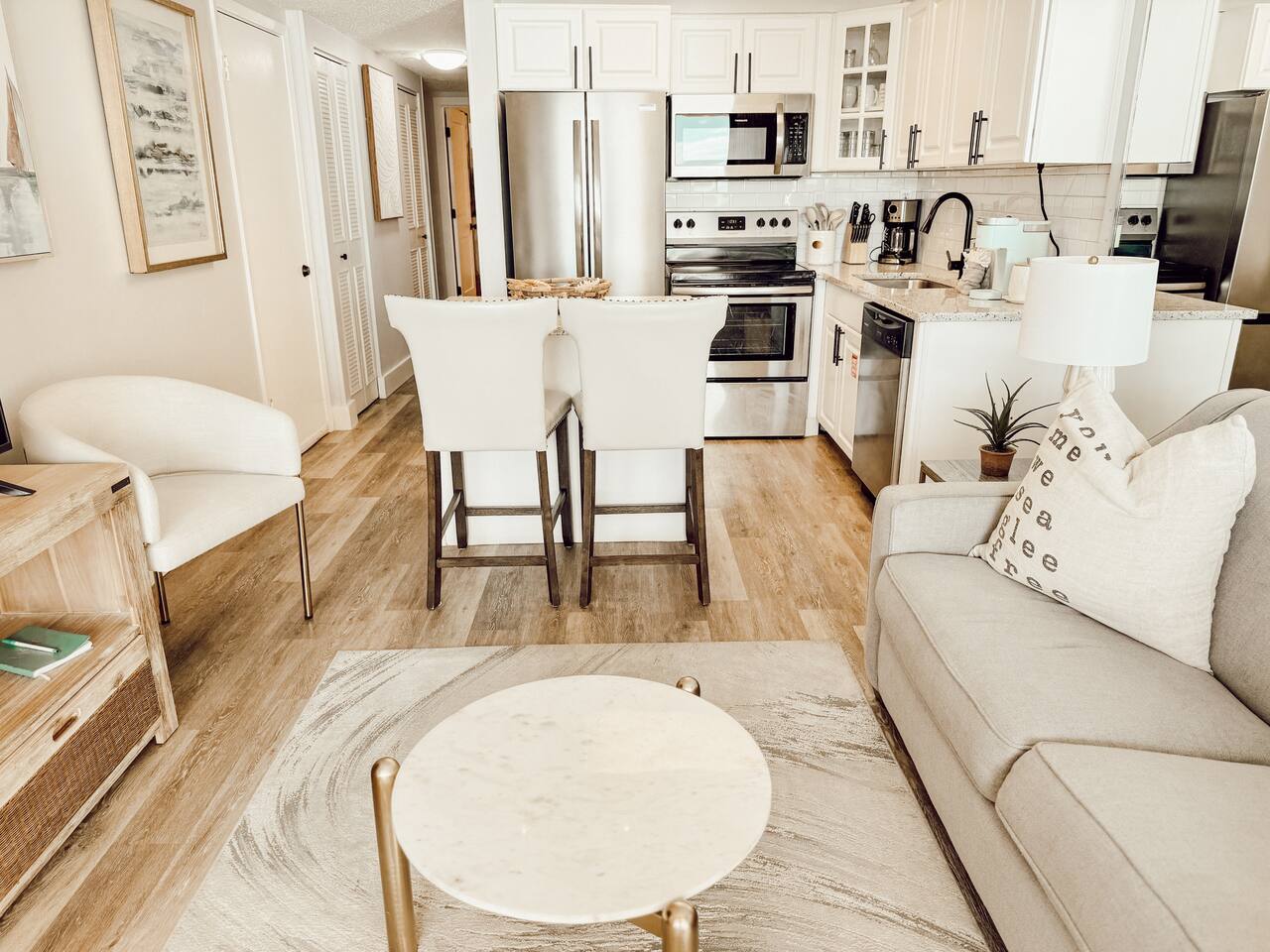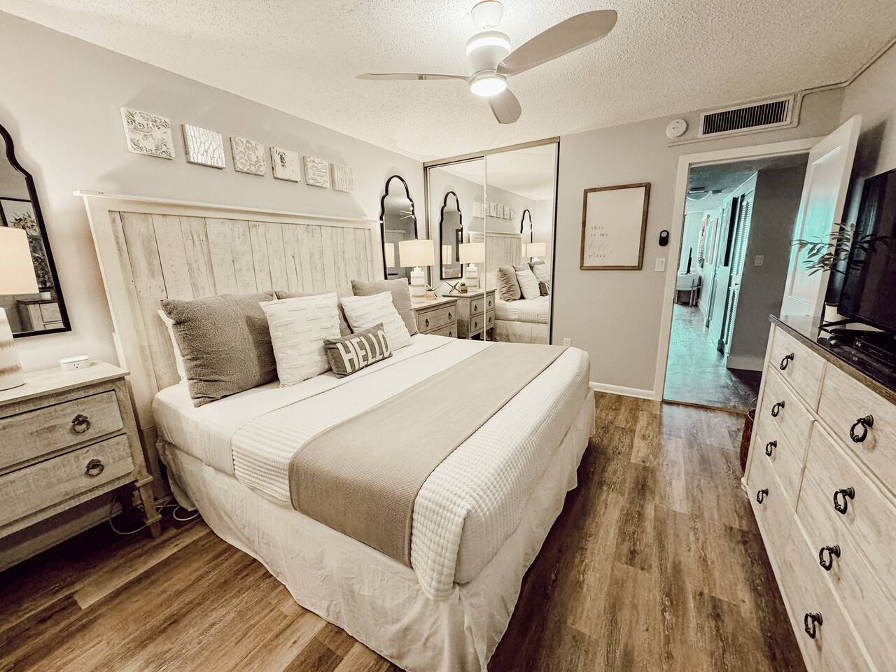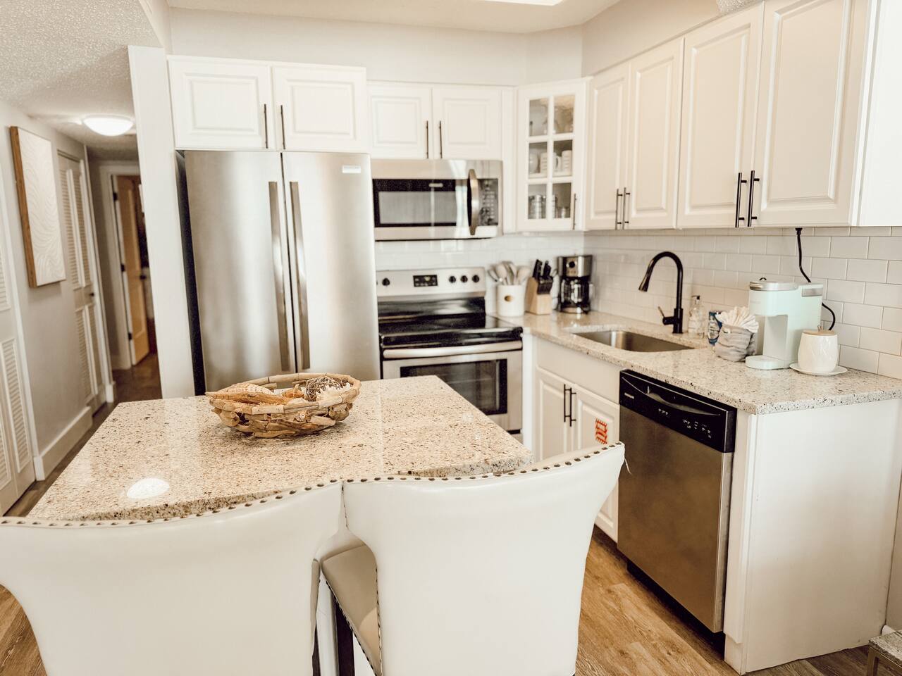â‘Master Bedroom:①✔ Spacious room with a king-sized bed for restful nights by the sea ✔ Elegant designer nightstands and a calming ambiance ✔ Closet and dresser for ample storage space ✔ Extra pillows and blankets for added comfort â‘Living Room:①✔ Cozy seating area perfect for unwinding after a day at the beach ✔ Full-size sleeper sofa with a memory foam mattress for additional sleeping space ✔ 50-inch HDTV loaded with streaming services (Amazon Prime Video, Netflix, Hulu, Disney+, Apple TV, standard cable, and DVD player) for endless entertainment â‘Kitchen and Dining Area:①✔ Fully equipped kitchen with stainless steel appliances: refrigerator, stove, oven, microwave, and dishwasher ✔ Cooking essentials provided, including pots, pans, oil, salt, and pepper ✔ Keurig coffee maker, hot water kettle, toaster, and blender for convenient meal prep ✔ Dining table and bar seating—perfect for meals or remote work â‘Bathroom:①✔ Stocked with plush towels, makeup washcloths, shampoo, conditioner, body soap, and shower gel ✔ Hot water for a relaxing shower after sun-filled beach days â‘Outdoor Space:①✔ Private balcony with comfortable furniture to enjoy breathtaking ocean, beach, and pool views ✔ Nearby beach access for your convenience ✔ BBQ grill and outdoor dining area for al fresco meals ✔ Sun loungers to soak up the Florida sunshine â‘Additional Amenities:①✔ Heated pool (91°F in winter) and year-round hot tub for relaxation ✔ 2 beach chairs, an umbrella, beach towels, and sand toys for your beach day ✔ Washer and dryer in-unit for hassle-free laundry â‘Safety and Security:①✔ Smoke alarm and fire extinguisher for peace of mind ✔ Private entrance and self-check-in with keypad for hassle-free access ✔ 24-hour gated resort with security staff â‘Entertainment and Connectivity:①✔ High-speed WiFi throughout the condo ✔ Streaming services and DVD player for family movie nights â‘Heating and Cooling:①✔ Central air conditioning and heating for year-round comfort â‘Parking and Facilities:①✔ Free parking on the premises ✔ Elevator access for easy transport of luggage and groceries â‘Services:①✔ Pickleball, tennis, and shuffleboard equipment available at the front gate Your stay at Sea-La-Vie promises tranquil comfort, unmatched convenience, and an incredible beachside escape. Enjoy live music and family-friendly activities in the summer! Book now to secure your dates and make your dream Gulf Coast adventure a reality!