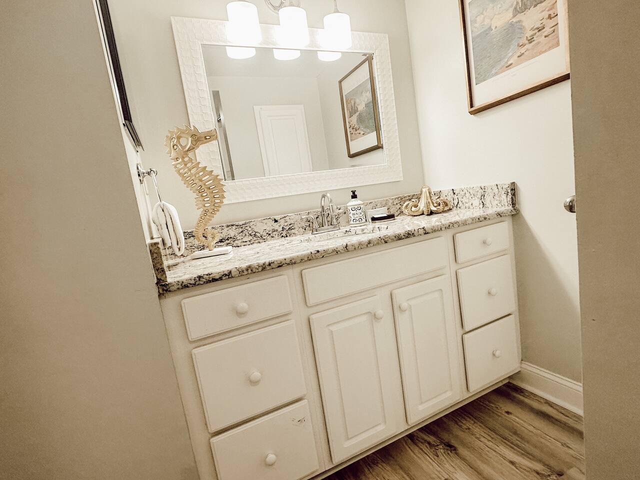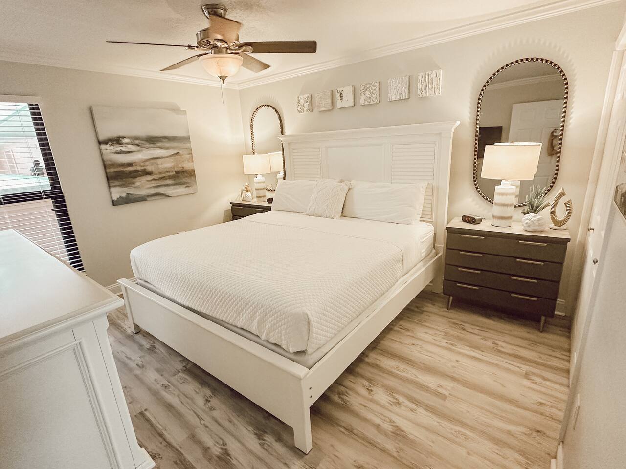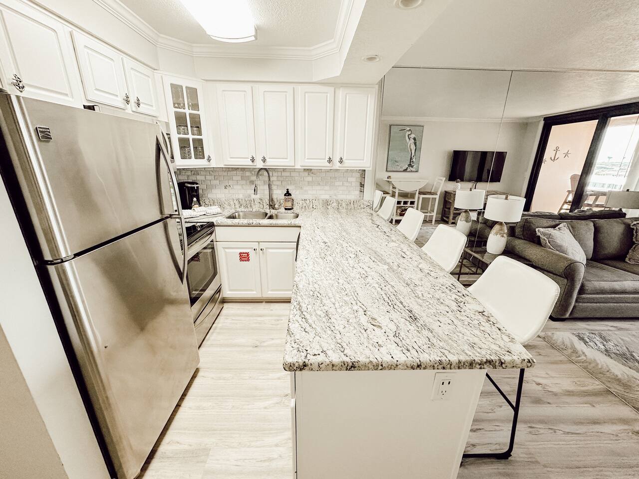 ⭑Master Bedroom:⭑ ✔ Spacious king-sized bed with cotton linens for a restful night’s sleep ✔ Closet with hangers and extra pillows and blankets ✔ TV for relaxing movie nights in bed ⭑Living Room:⭑ ✔ Full-size sleeper sofa, perfect for two small children or an extra guest ✔ Smart TV with streaming options for endless entertainment ✔ Large windows offering breathtaking waterfront views ✔ Books and reading material for leisurely afternoons ⭑Kitchen and Dining Area:⭑ ✔ Fully equipped kitchen with a Kenmore refrigerator, stainless steel oven, electric stove, and dishwasher ✔ Cooking basics provided: pots, pans, oil, salt, and pepper ✔ Keurig coffee maker, toaster, and wine glasses for your morning coffee or evening drink ✔ Dining table for family meals or game nights ⭑Bathrooms:⭑ ✔ Modern bathroom with a bathtub and hot water for long, relaxing soaks ✔ Hair dryer and plush towels included for your convenience ✔ Outdoor shower to rinse off sandy feet after a beach day ⭑Outdoor Space:⭑ ✔ Private balcony to sip your favorite cocktail as the sun sets over the water ✔ Resort-style amenities, including a shared pool and hot tub (heated in winter) ✔ Pavilion with charcoal grills and picnic tables for al fresco dining ✔ Direct beach access with 2 beach chairs, an umbrella, and beach toys provided for your use ⭑Additional Amenities:⭑ ✔ Washer and free dryer in-unit ✔ Exercise equipment available for staying active during your stay ✔ Iron and ironing board for a polished look ✔ Beach towels and floats for added fun ⭑Safety and Security:⭑ ✔ Gated community with 24-hour gatekeeper ✔ Ring doorbell and exterior security cameras for guest safety ✔ Smoke alarm and fire extinguisher for peace of mind ⭑Entertainment and Connectivity:⭑ ✔ High-speed WiFi for work or streaming ✔ TVs in the living room and bedroom for entertainment ⭑Heating and Cooling:⭑ ✔ Central heating and air conditioning for year-round comfort ✔ Ceiling fans and portable fans for added airflow ⭑Parking and Facilities:⭑ ✔ Free parking on premises for your convenience ✔ Elevator access, making it easy to bring luggage to your condo ⭑Services:⭑ ✔ Self check-in with a smart lock for flexible arrival times Your stay at “Tranquil Waters” promises serene comfort, modern convenience, and a picturesque experience. During summer, enjoy children’s activities on Tuesdays and live music at the pavilion a couple of nights a week. Book today and let the relaxing sound of the waves become the soundtrack to your perfect vacation!