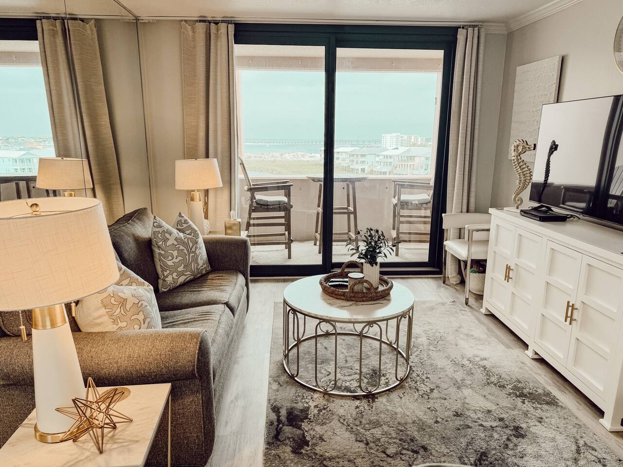 Welcome to your tranquil beachfront condo located in a gated community with stunning Gulf, harbor, and lake views! This 1-bedroom, 1-bathroom condo is designed to provide you with a relaxing coastal escape, making your stay truly unforgettable.