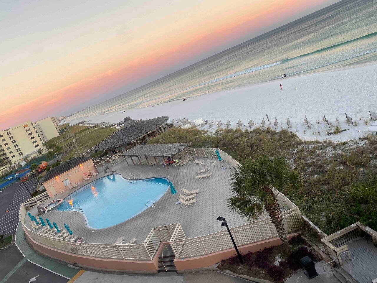 This is a GATED COMMUNITY. You will receive a parking pass at the front gate upon arrival. (24 hour gate keeper) This is also a resort with many activities for children, as well as, adults. There is Live music at the pavilion a few nights during the week(seasonal). Also, tennis courts, pickle ball, and basketball courts are available for your use. The pavilion with charcoal grills and tables is open to all guests. There are beach chairs and an umbrella, as well as, beach toys for your use. The pool is heated during the winter months. There is also a poolside hot tub open year round. A beach setup (2 chairs & an umbrella) can be purchased for $60/day.